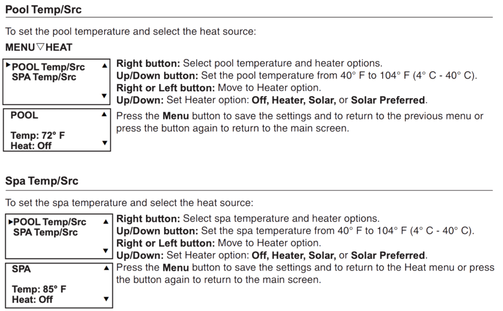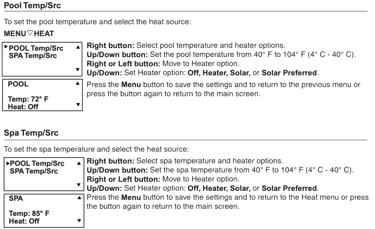 The heater is not activated by default, even when the water circulation is turned on. The preset temperature for heating the pool is 86F.